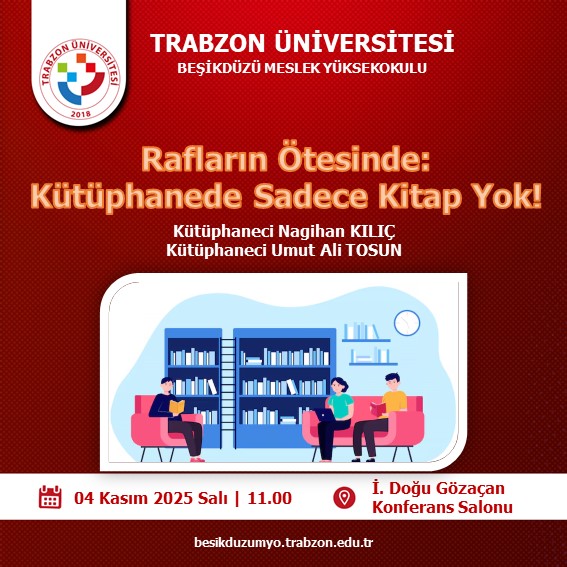 Rafların Ötesinde: Kütüphanede Sadece Kitap Yok!; 04 Kasım 2025 Salı | 11.00; İ. Doğu Gözaçan Konferans Salonu