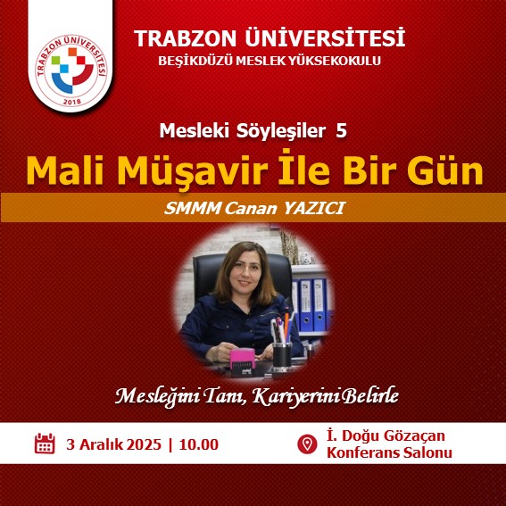 Mesleki Söyleşiler 5: Mali Müşavir İle Bir Gün SMMM Canan YAZICI 3 Aralık 2025 Çarşamba 10.00 İ. Doğu Gözaçan Konferans Salonu