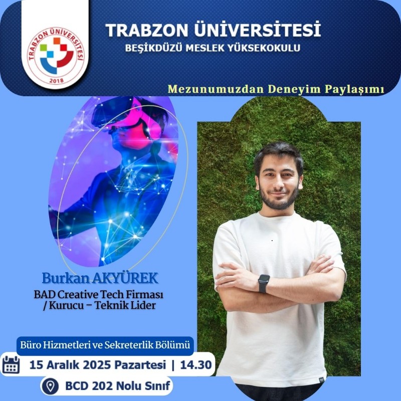 Büro Hizmetleri ve Sekreterlik Bölümü; Mezunumuzdan Deneyim Paylaşımı; 15 Aralık 2025 Pazartesi 14.30 BCD 202 Nolu Sınıf