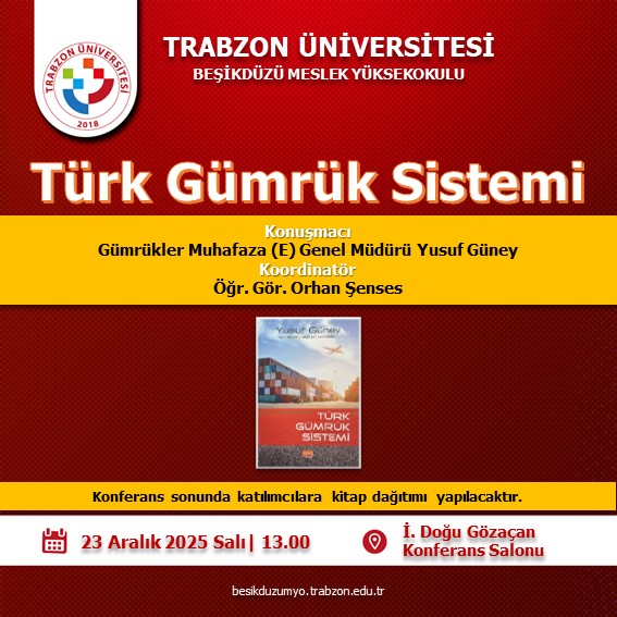 Türk Vergi Sistemi Konulu Eğitim Semineri; 23 Aralık 2025 Salı 13.00; Beşikdüzü MYO İ. Doğu Gözaçan Konferans Salonu