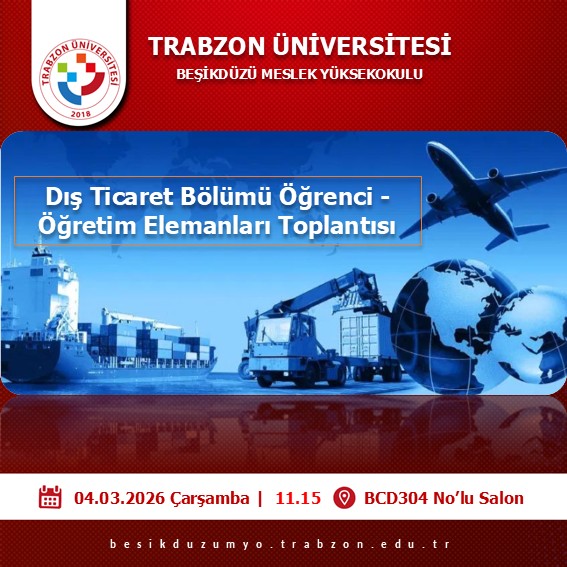 Dış Ticaret Bölümü Öğrenci–Öğretim Elemanları Toplantısı 📅 Tarih: 04.03.2026 🕒 Saat: 11:45 📍 Yer: BCD304 No’lu Salon