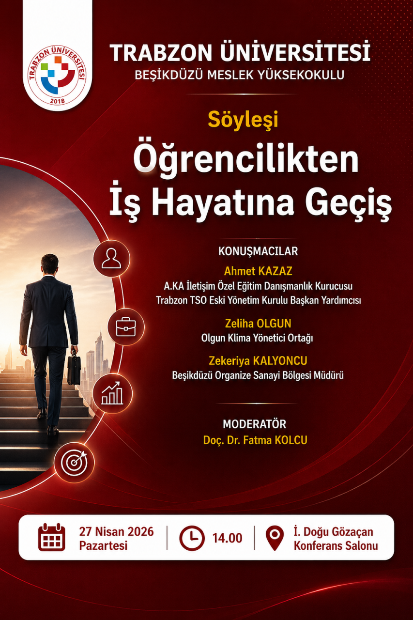 SÖYLEŞİ; Öğrencilikten İş Hayatına Geçiş, 27 Nisan 2026 Pazartesi 14.00, İ. Doğu Gözaçan Konferans Salonu