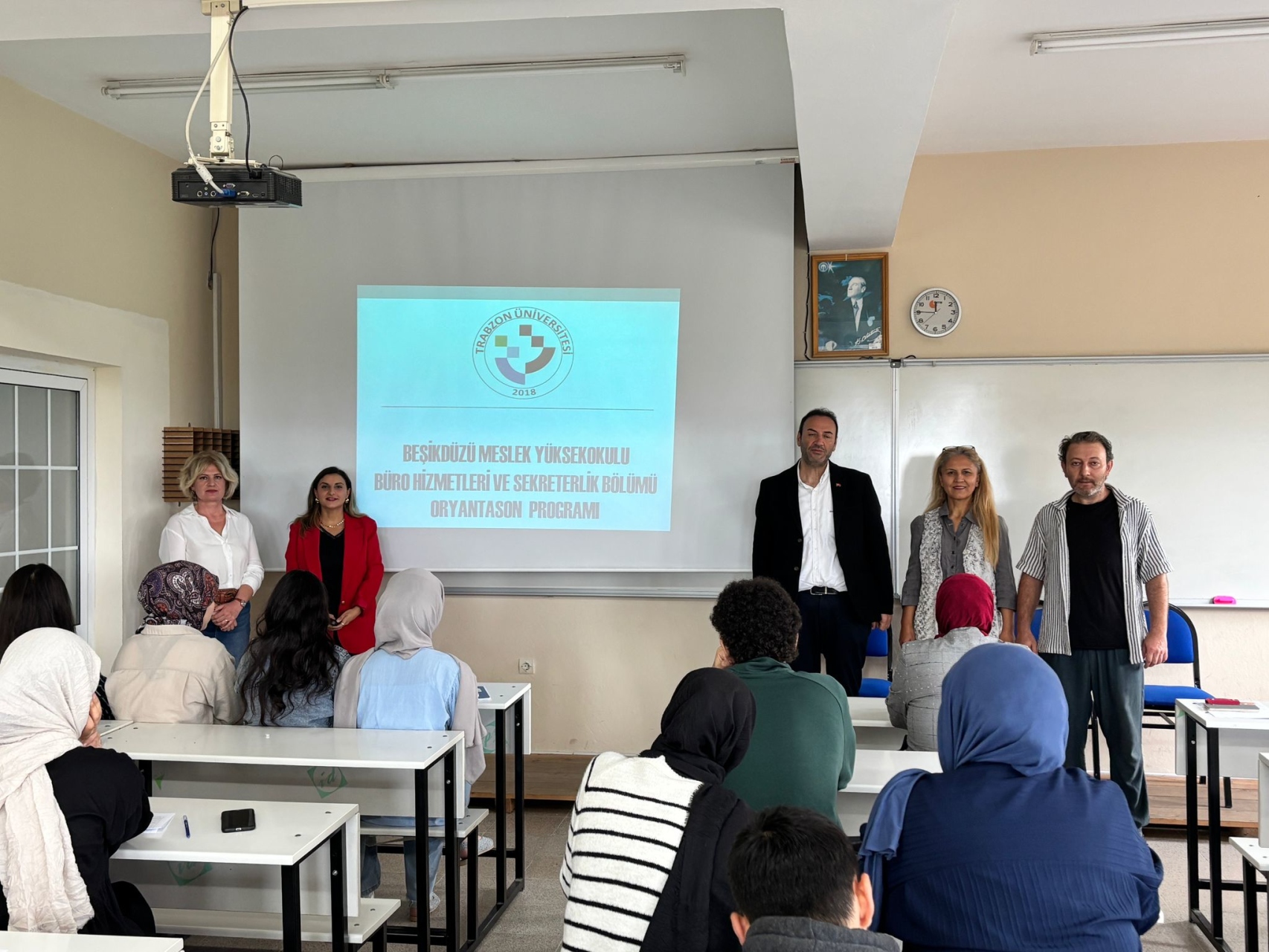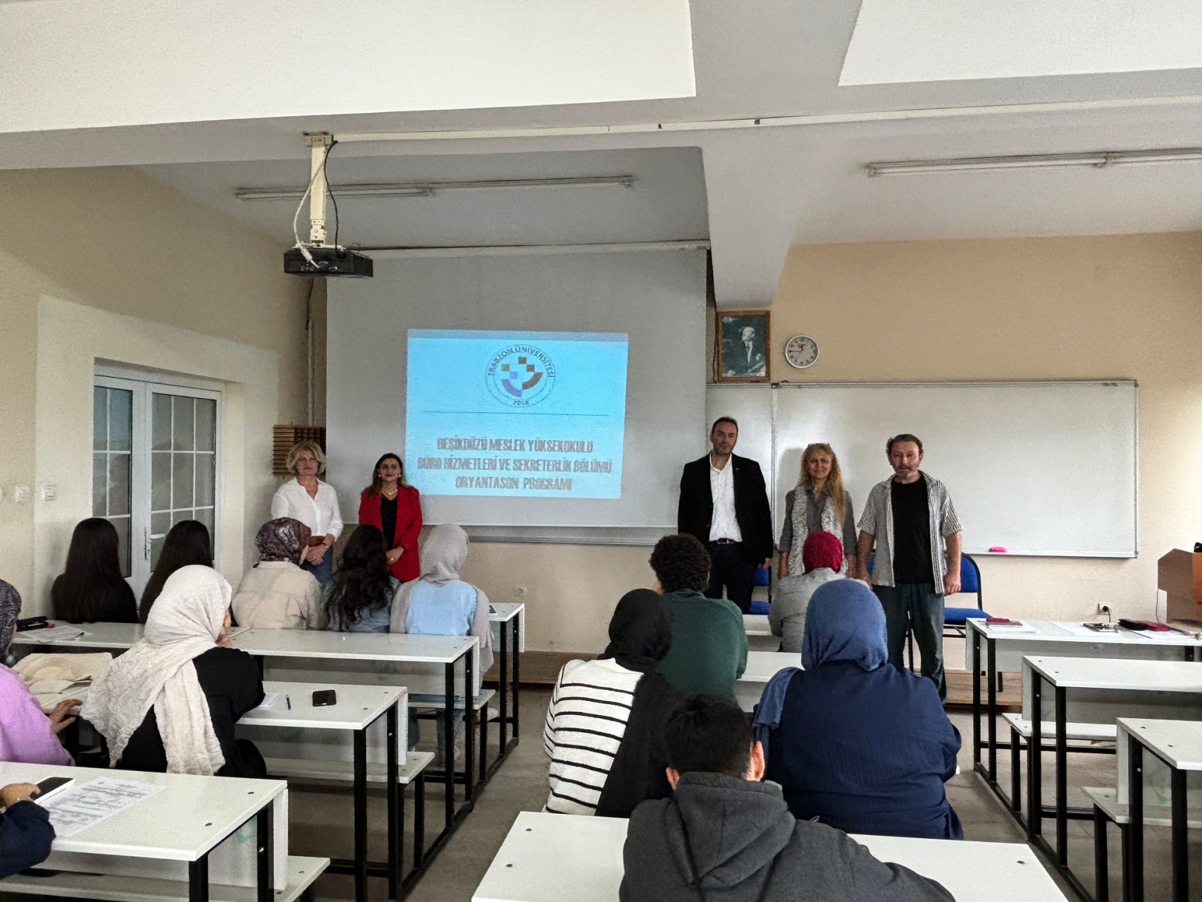 Büro Hizmetleri ve Sekreterlik Bölümü Oryantasyon Toplantısı 29 Eylül 2025 tarihinde Büro Yönetimi ve Yönetici Asistanlığı programı ve Çağrı Merkezi Hizmetleri program öğretim elemanı ve öğrencilerinin katılımı ile gerçekleştirildi. Oryantasyon programında Üniversitemiz, Okulumuz ve öğrenci işleri ile ilgili bilgiler verildi.