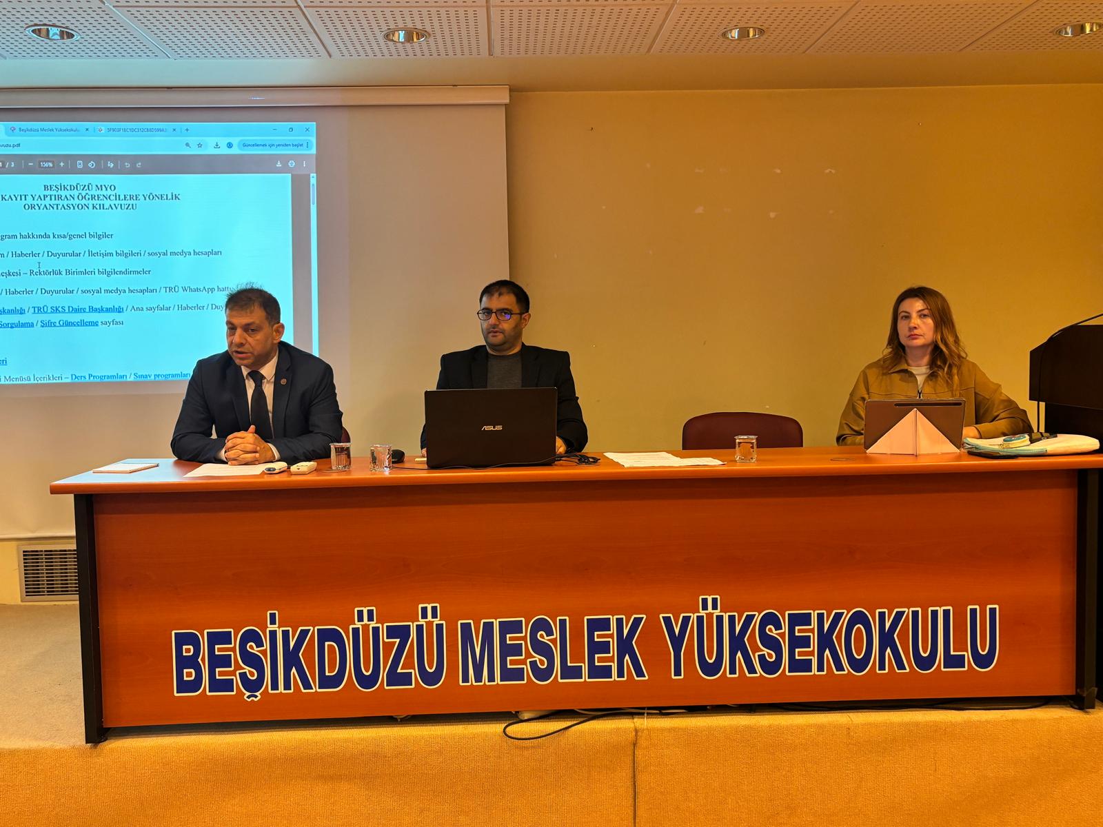 Muhasebe ve Vergi Bölümü Muhasebe ve Vergi Uygulamaları Programı Oryantasyon Toplantısı yapıldı. Toplantı, program öğretim elemanı ve öğrencilerinin katılımı ile gerçekleştirildi. Oryantasyon programında Üniversitemiz, Okulumuz ve öğrenci işleri ile ilgili bilgiler verildi.