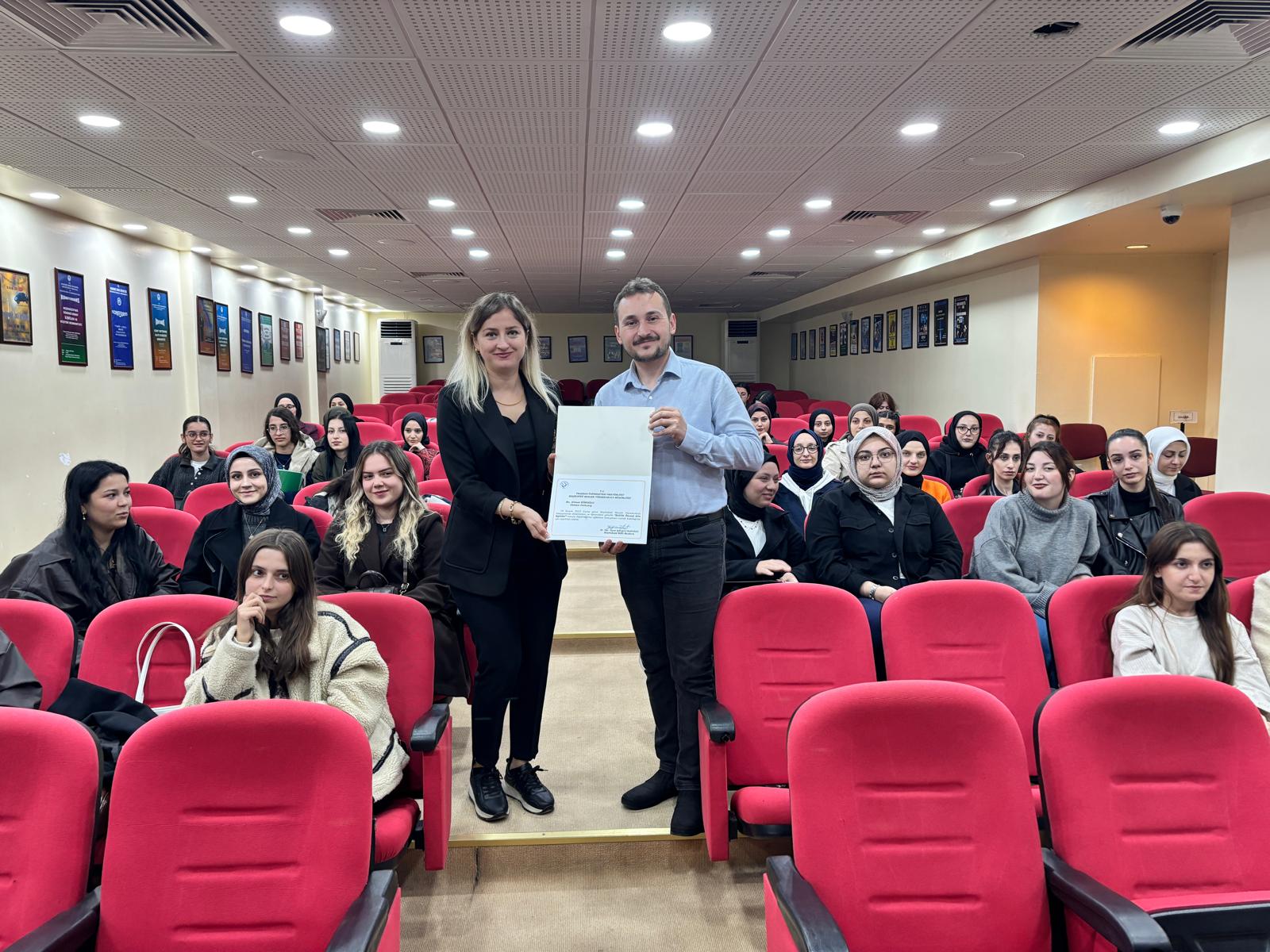 Gerçekleştirilen etkinlikte; sağlıklı iletişim, aile içi rol paylaşımı, evlilikte uyum, çatışma çözme becerileri ve doğru eş seçiminin önemi gibi konular ele alındı. Öğrencilerimizin aktif katılımıyla ilerleyen konferans, evliliğe hazırlık sürecine ilişkin farkındalık geliştirilmesine önemli katkı sundu.