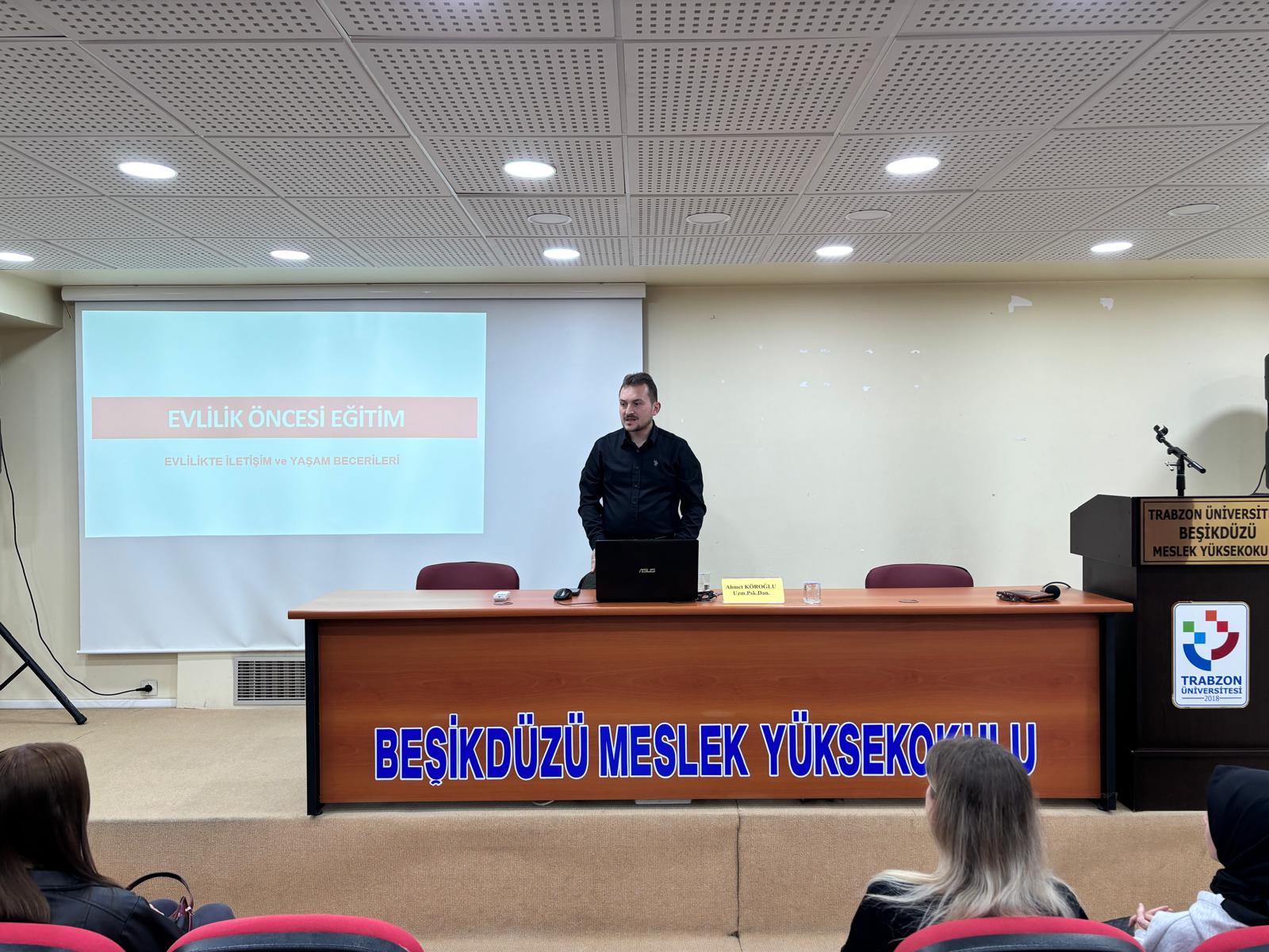 Vakfıkebir Sosyal Hizmet Merkezi Müdürlüğü’nün katkılarıyla, Uzman Psikolog Ahmet Köroğlu okulumuzda 2. sınıf öğrencileriyle bir araya gelerek “Evlilik Öncesi Aile Eğitimi” konulu bir konferans verdi.
