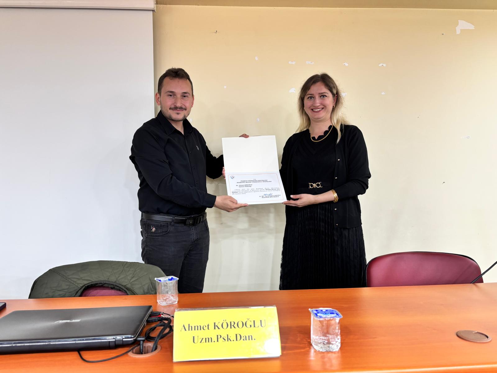 Katkılarından dolayı Vakfıkebir Sosyal Hizmet Merkezi Müdürlüğü’ne ve değerli sunumları için Uzman Psikolog Ahmet Köroğlu’na teşekkür ederiz.