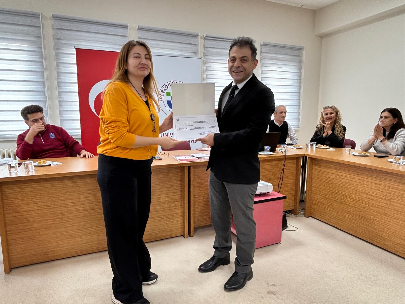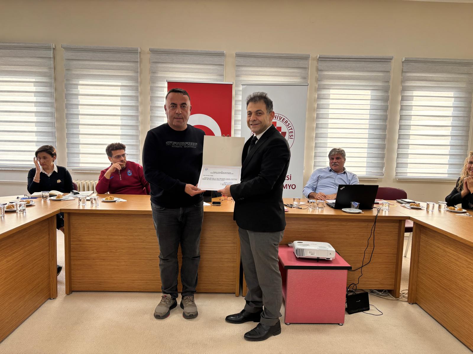 Toplantı kapsamında gerek kalite yönetim süreçlerimizde gerek MEDEK Akreditasyon süreçlerimizde özverili çalışmaları nedeniyle katkı sunan akademik ve idari personelimize MYO Müdürlüğü adına Teşekkür Belgesi takdim edildi.
