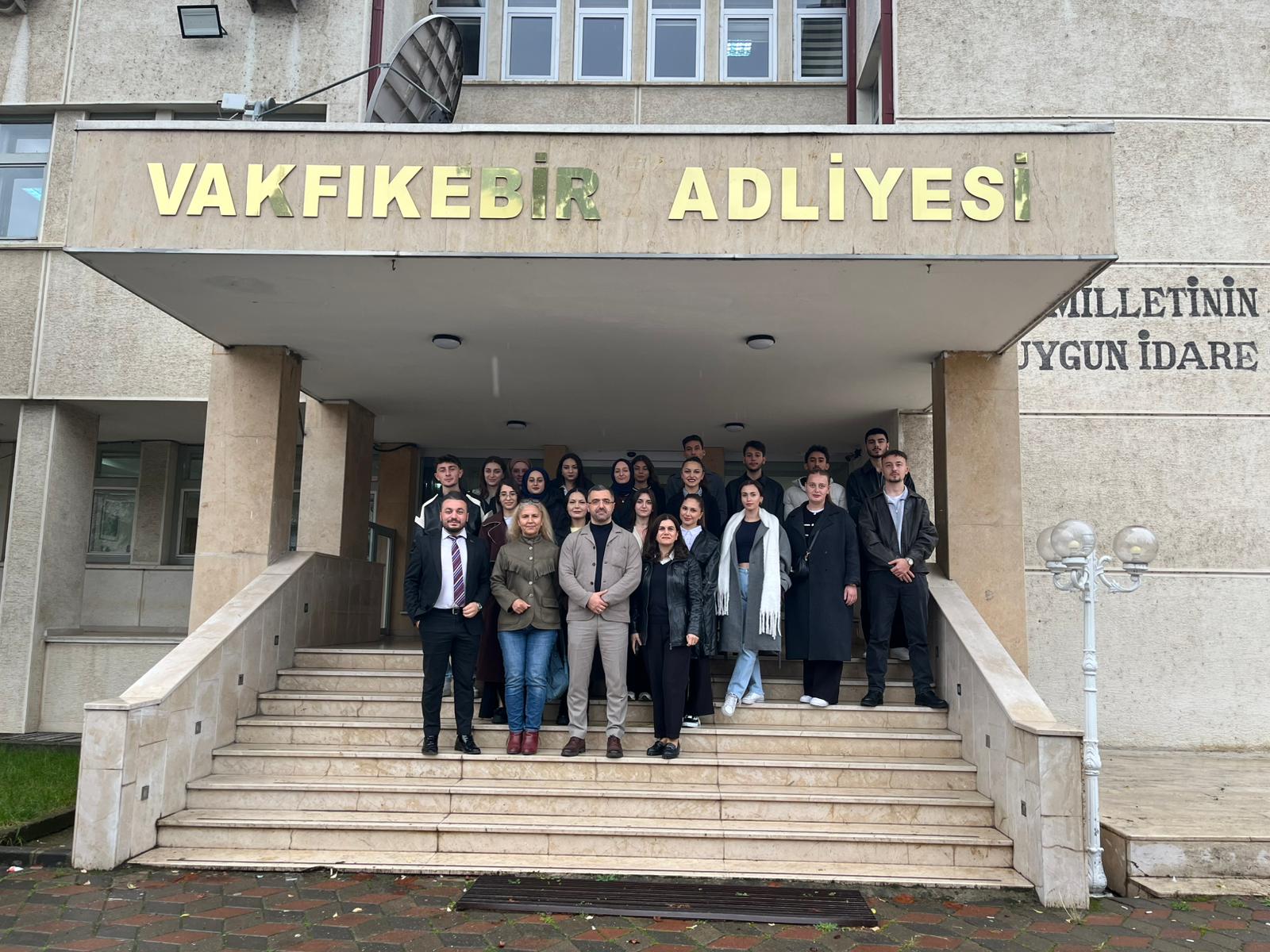 Okulumuz akademisyenlerinden Öğr. Gör. Sema GÜZELCİK koordinatörlüğünde Vakfıkebir Adliyesine gerçekleştirilen “Adliye ve yargı işleyişini tanıma, yerinde İnceleme” Teknik Gezisi, Temel Hukuk ve İş ve Sosyal Güvenlik Hukuku derslerinin içeriğine uygun olarak, öğrencilerimizin mesleki gelişimlerine katkı sağlayan son derece verimli bir etkinlik olmuştur. Gezi kapsamında öğrencilerimiz; adliye birimlerini yerinde görme, işleyişi inceleme ve yargı süreçlerinin nasıl yürüdüğünü gözlemleme fırsatı bulmuştur.