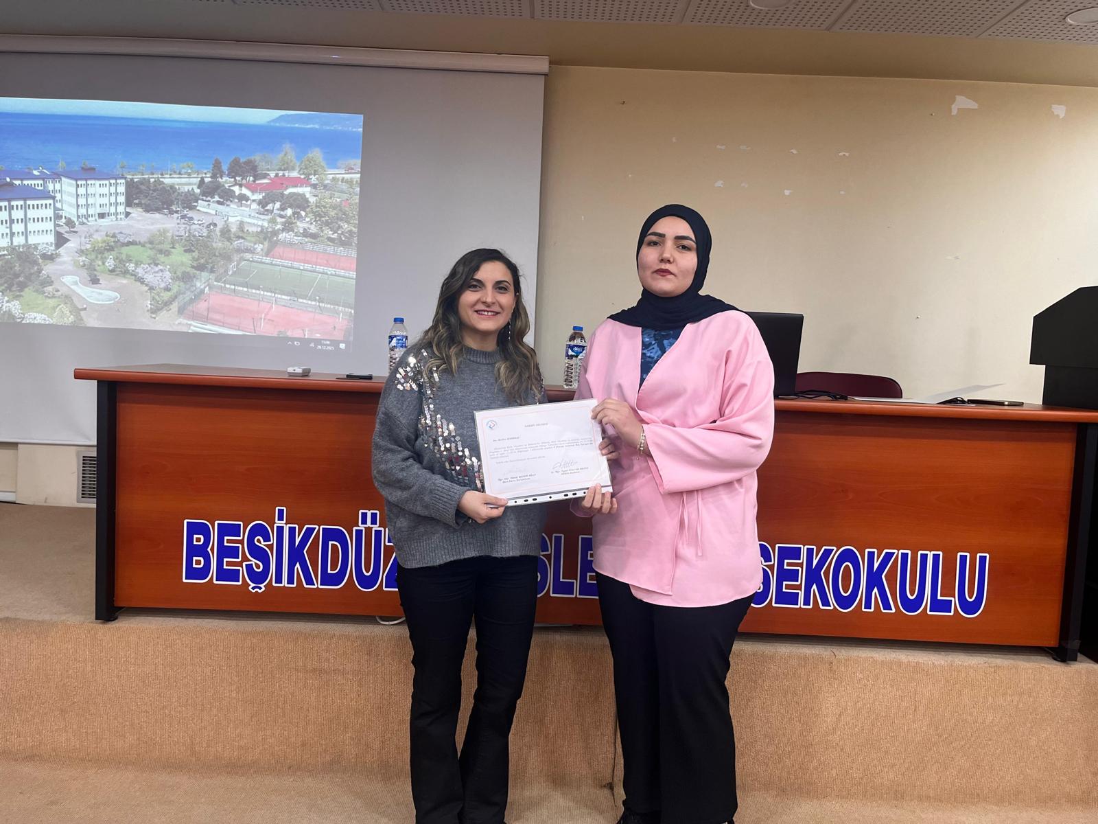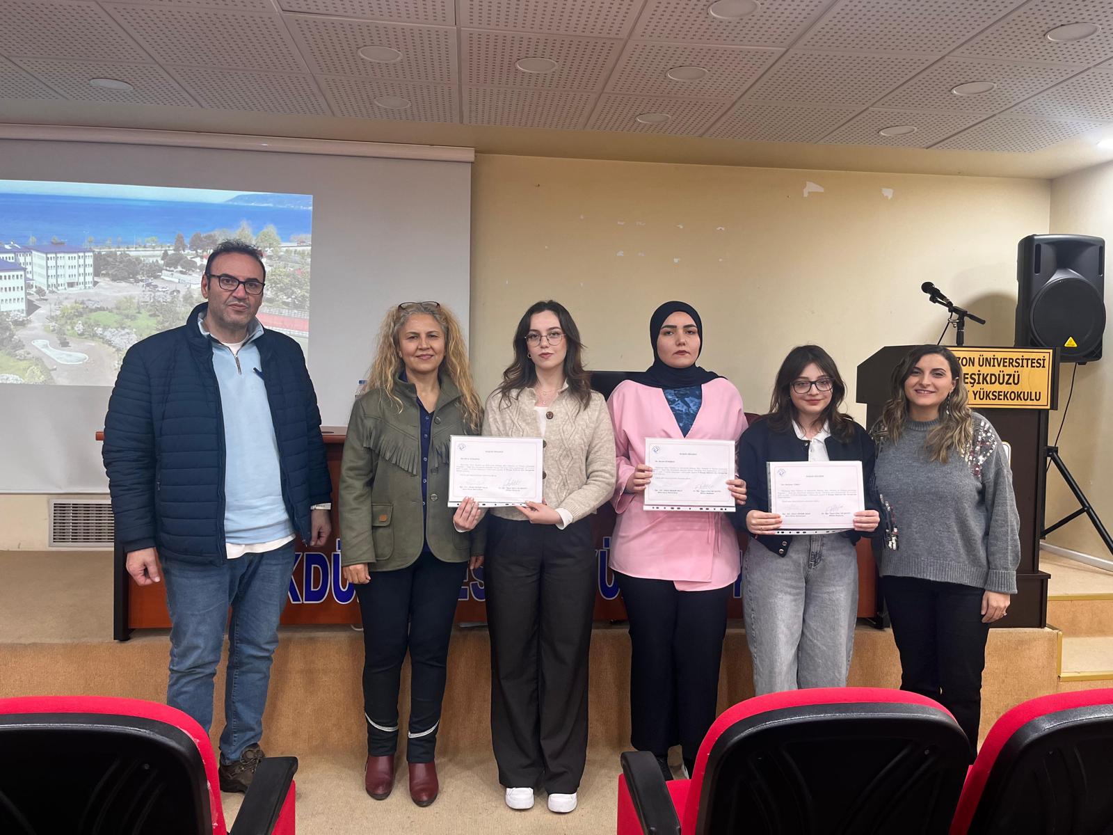 Ayrıca, Muhasebe dersi ara sınavında en yüksek notu alan öğrenciler de akademik başarılarından dolayı başarı belgesi ile ödüllendirilmiştir.