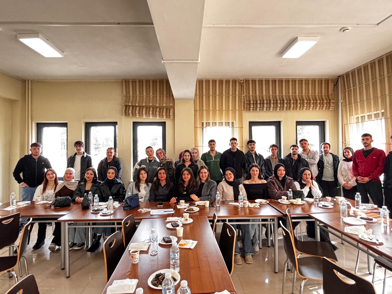 Dış Ticaret Bölümü öğrencileri ile Bölüm Başkanı Dr. Öğr. Üyesi Filiz Köyel bir araya gelerek 2025–2026 Eğitim-Öğretim Yılı bahar dönemine yönelik oryantasyon ve değerlendirme toplantısı gerçekleştirdi. Okul yemekhanesinde düzenlenen etkinlik, öğrencilerle akademik iletişimi güçlendirmek ve yeni döneme ilişkin süreçleri birlikte planlamak amacıyla organize edildi. Bu yemekli buluşmada öğrenciler; akademik süreçler, mesleki gelişim fırsatları, sektörle iş birliği çalışmaları, dönem içinde planlanan etkinlikler ve kariyer hedefleri hakkında bilgilendirildi. Aynı zamanda öğrencilerin görüş, öneri ve beklentileri dinlenerek karşılıklı fikir alışverişinde bulunuldu.