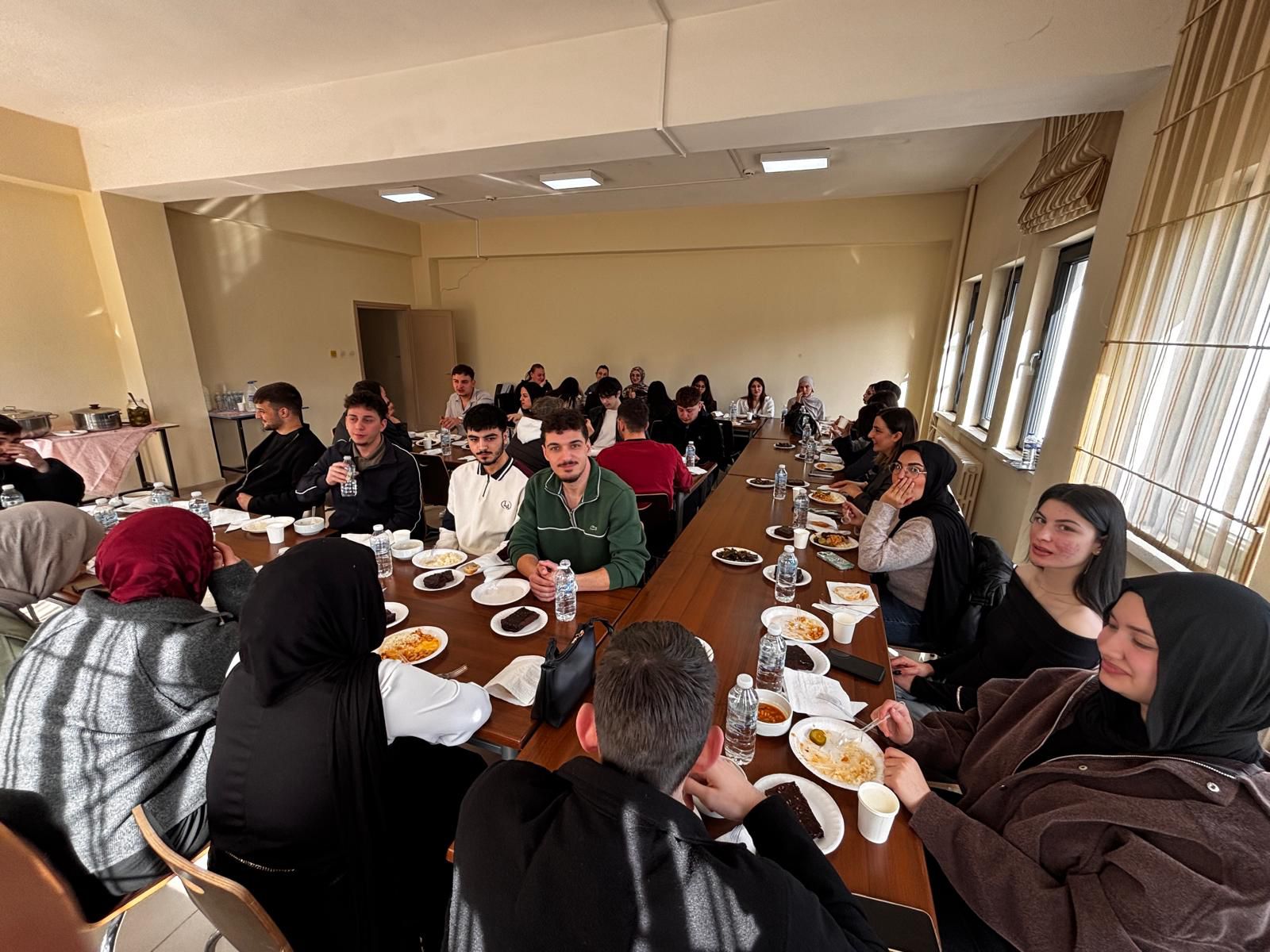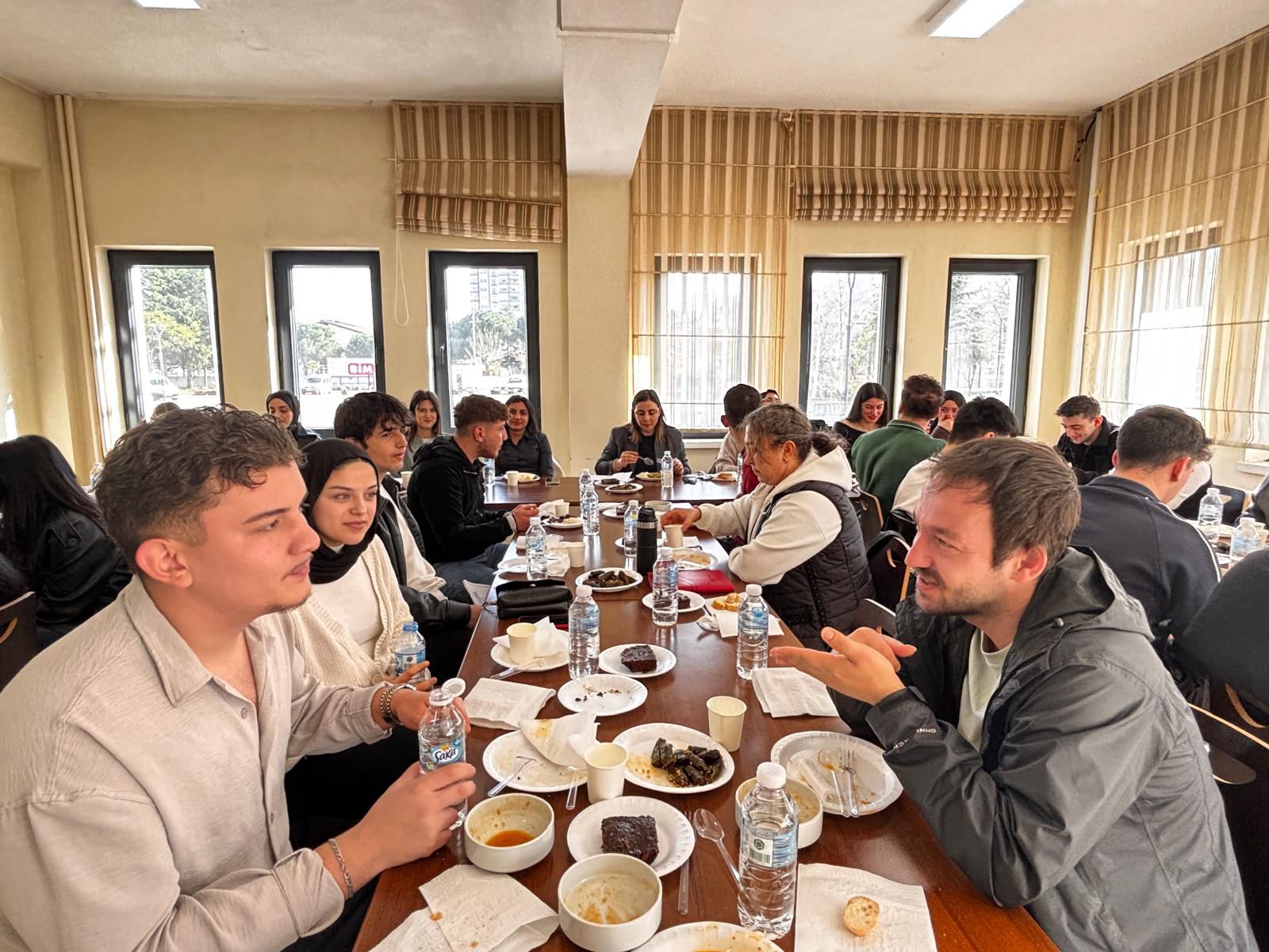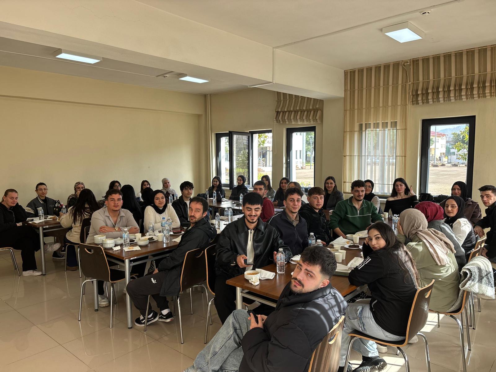 Dış Ticaret Bölümü öğrencileri ile Bölüm Başkanı Dr. Öğr. Üyesi Filiz Köyel bir araya gelerek 2025–2026 Eğitim-Öğretim Yılı bahar dönemine yönelik oryantasyon ve değerlendirme toplantısı gerçekleştirdi. Okul yemekhanesinde düzenlenen etkinlik, öğrencilerle akademik iletişimi güçlendirmek ve yeni döneme ilişkin süreçleri birlikte planlamak amacıyla organize edildi. Bu yemekli buluşmada öğrenciler; akademik süreçler, mesleki gelişim fırsatları, sektörle iş birliği çalışmaları, dönem içinde planlanan etkinlikler ve kariyer hedefleri hakkında bilgilendirildi. Aynı zamanda öğrencilerin görüş, öneri ve beklentileri dinlenerek karşılıklı fikir alışverişinde bulunuldu.