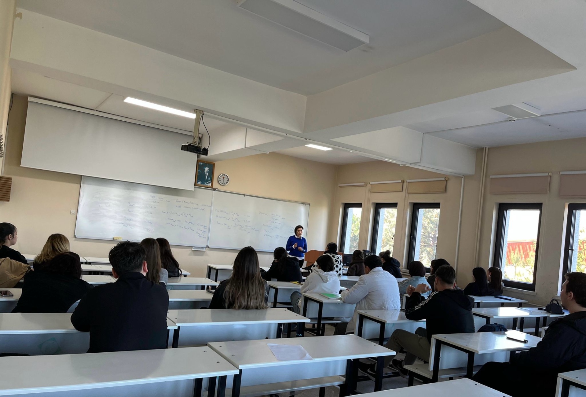 Yönetim ve Organizasyon Bölümü Bölüm Başkanı Doç. Dr. Fatma Kolcu İşletme Yönetimi Programı öğrencileri ile “Öğrenci Görüş, Öneri ve Geri Bildirim Toplantısı” kapsamında bir araya geldi. Toplantıda Program öğrencilerinin akademik süreçlere ilişkin görüş, öneri ve beklentileri ele alındı. Karşılıklı istişare ortamında gerçekleşen buluşmada; ders içerikleri, uygulamalı eğitim faaliyetleri, akademik danışmanlık hizmetleri ve bölüm içi iletişim konularında öğrencilerin değerlendirmeleri dinlendi. Öğrencilerin, eğitim-öğretim sürecinin geliştirilmesine yönelik düşüncelerini doğrudan bölüm başkanlığına iletme fırsatı bulduğu toplantıda, öğrenci geri bildirimlerinin bölümün akademik gelişimi açısından önemli bir yol gösterici olduğu belirtilerek, katılımcı ve öğrenci odaklı yönetim anlayışı doğrultusunda bu tür toplantıların düzenli aralıklarla sürdürüleceği ifade edildi.