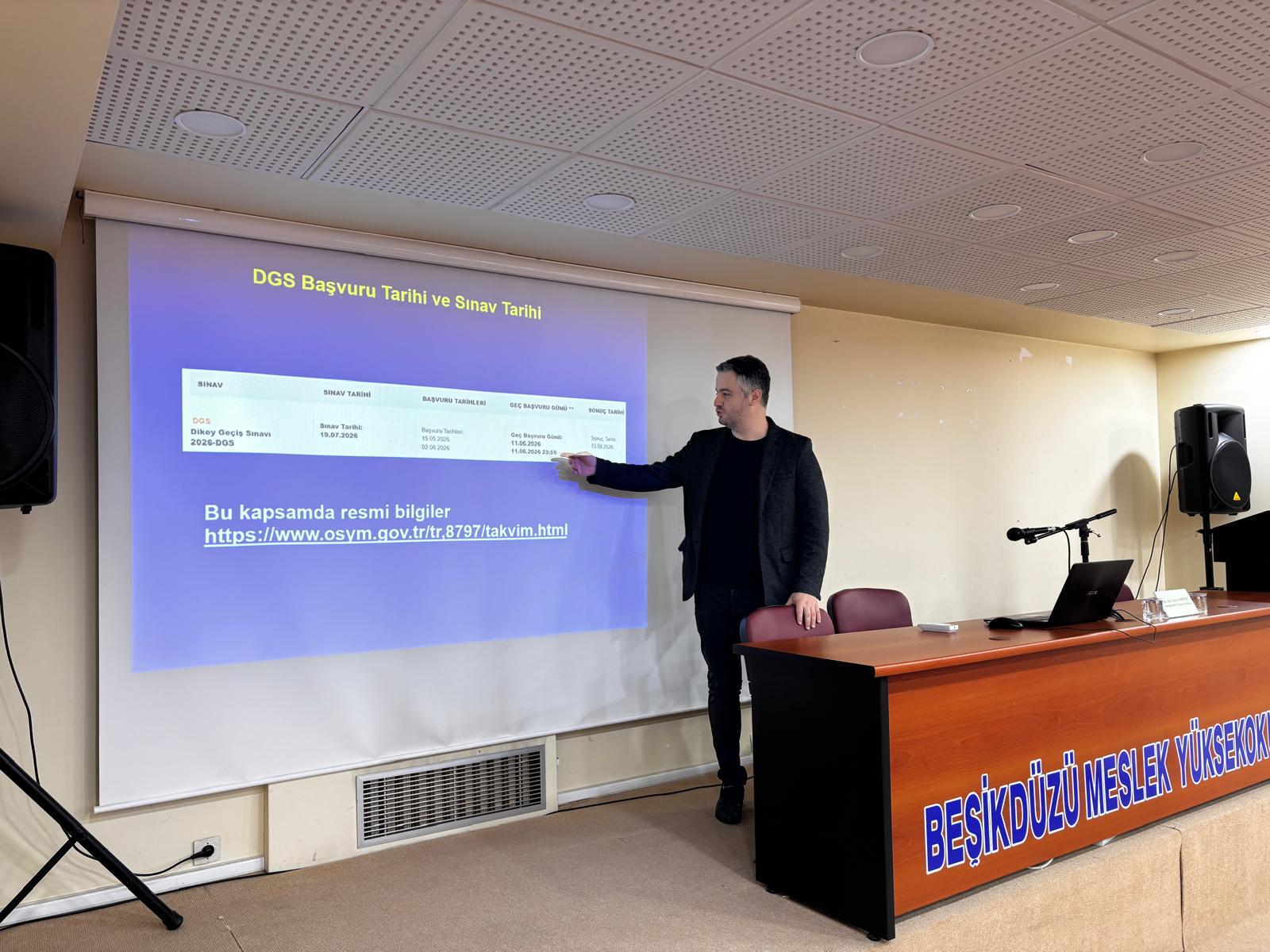 Yüksekokulumuzda düzenlenen “Dikey Geçiş Sınavı (DGS) ile Lisansa Geçiş: Süreç, İçerik ve Başarı Stratejileri” konulu seminer gerçekleştirildi.