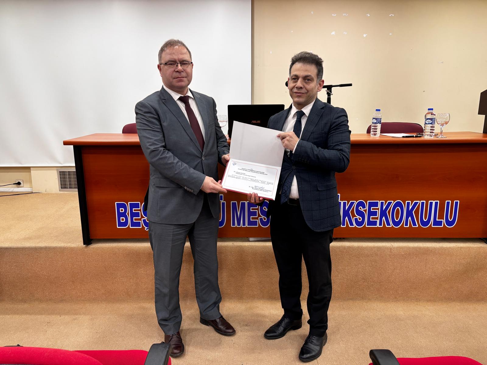 Katılımcıların sorularını da yanıtlayan sayın Ahmet Yavuz'a, etkinlik sonunda katkıları nedeniyle bir Teşekkür Belgesi takdim edildi.
