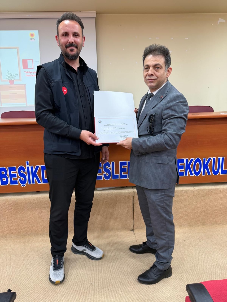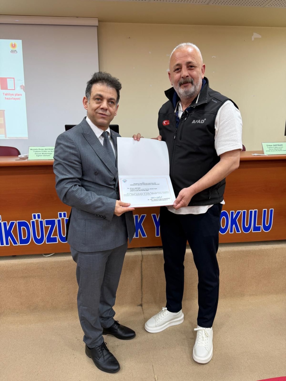 Katkılarından dolayı Trabzon İl Afet ve Acil Durum Müdürlüğü ekibine teşekkür belgeleri takdim edildi.