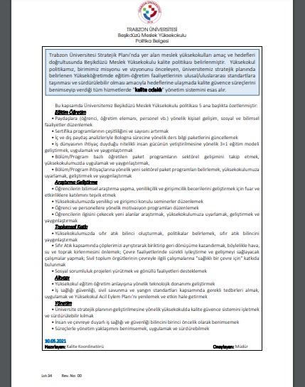 Kalite Politika Belgemiz